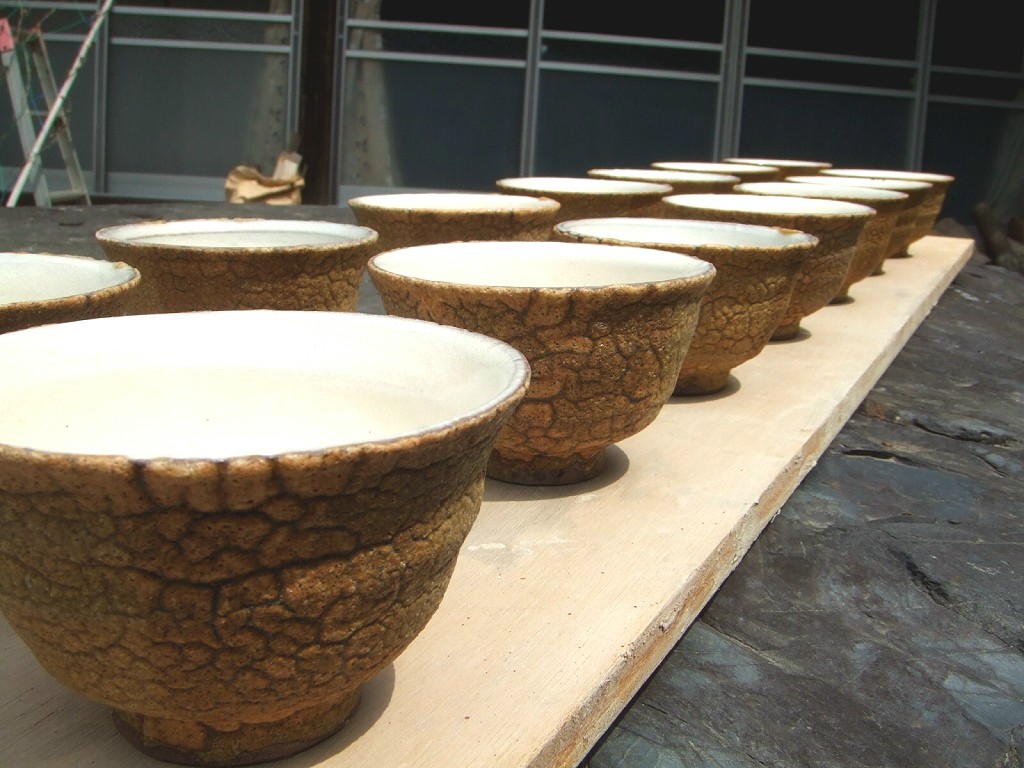 同じく荒川石の釉薬を口縁に。融点が高いために安定せず。計算不能だけどその反面一つ一つ面白い結果に。