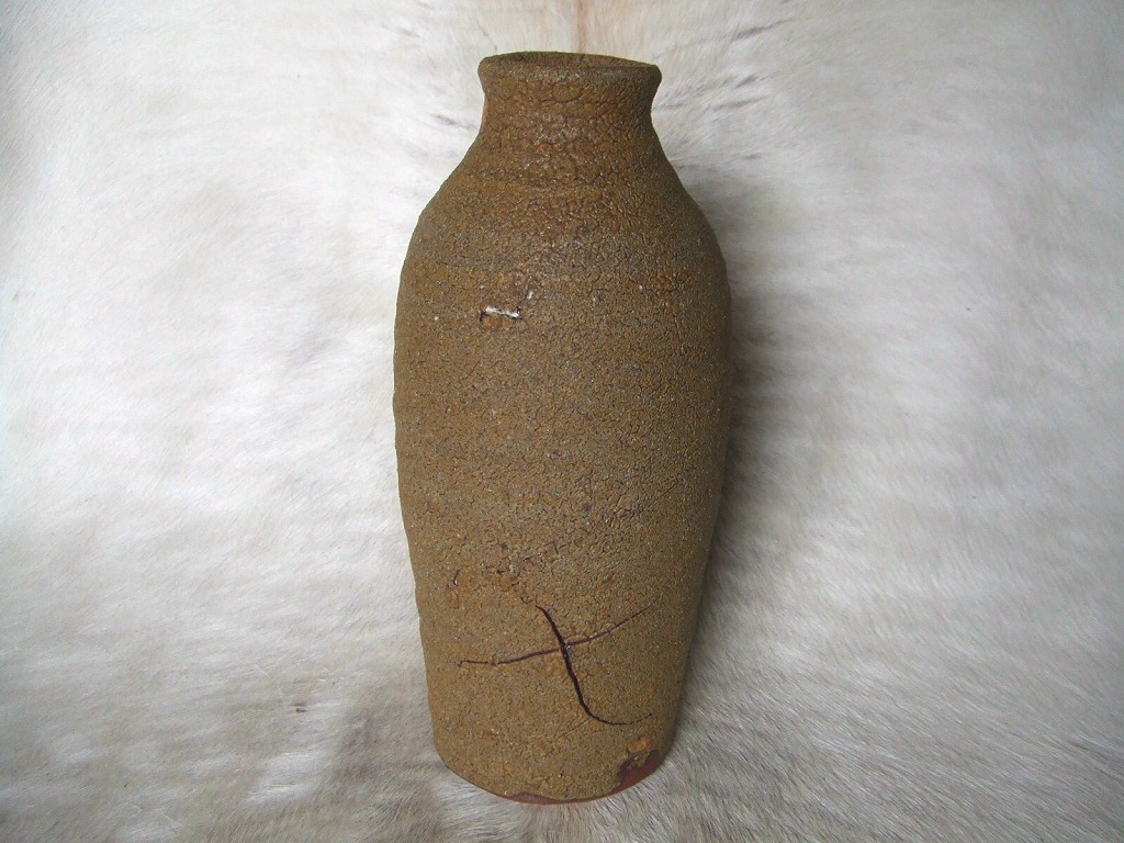 花入。寄居の原土に混じってた小石のためにヒビ割れてしまいました…だが、それがまたいい感じで^^