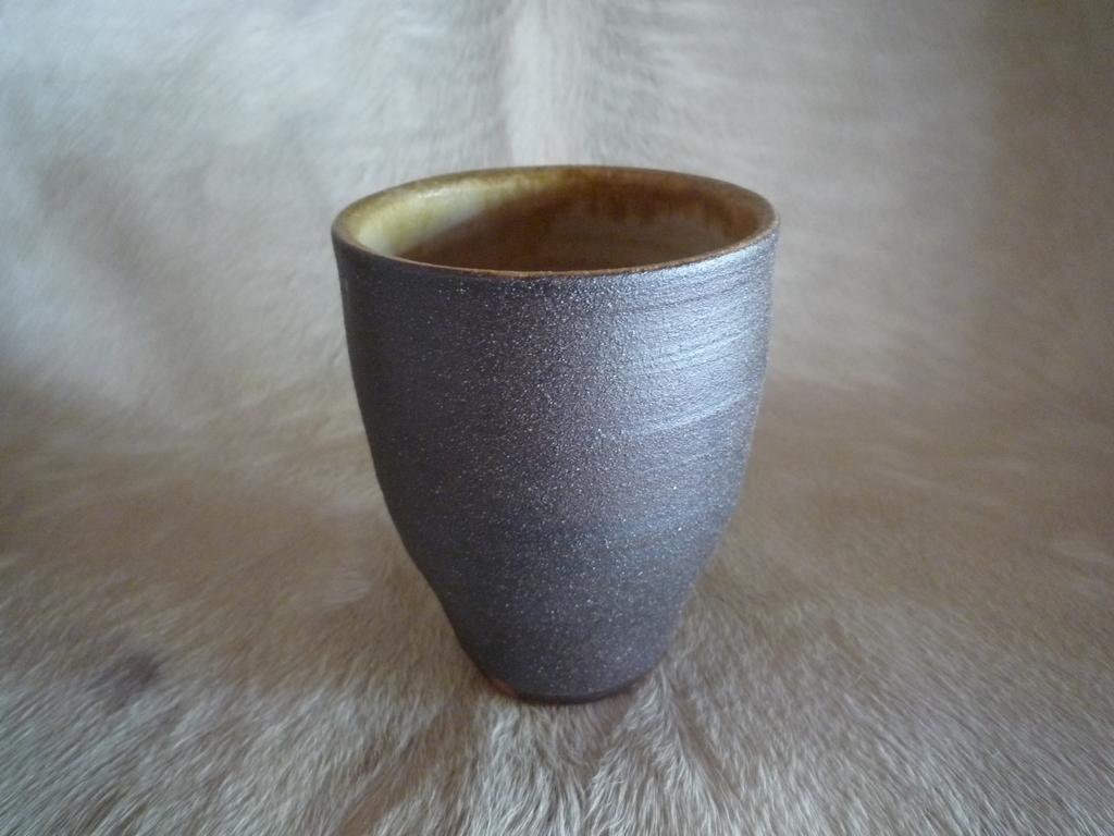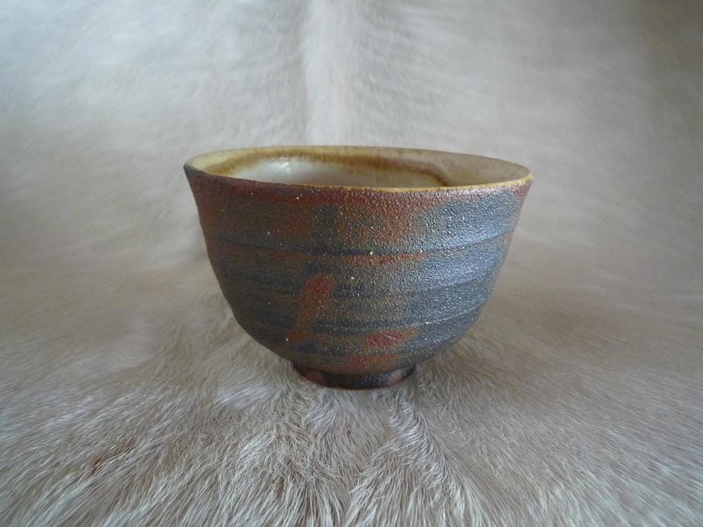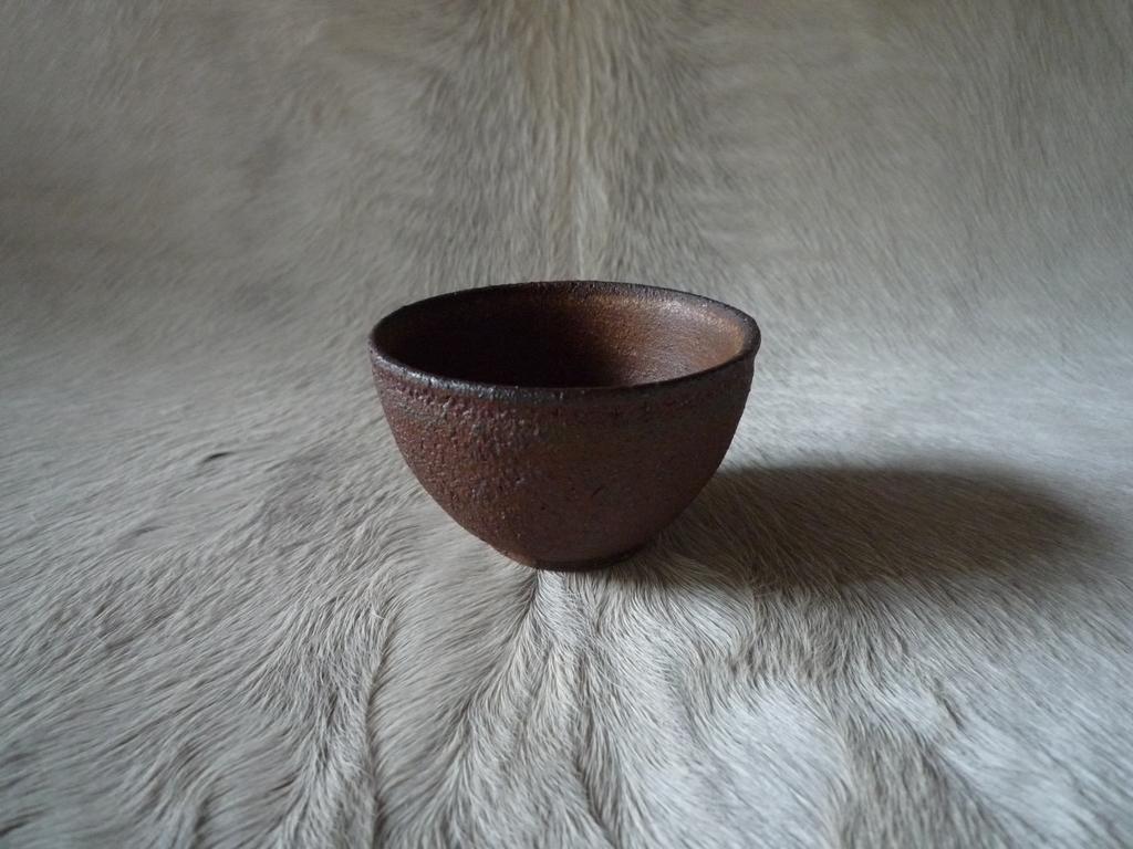 汲み出し茶碗。新たに調整した自作釉薬のムラと鉄瓶のような肌合いが一歩先へ進んだ作品にしてくれました。